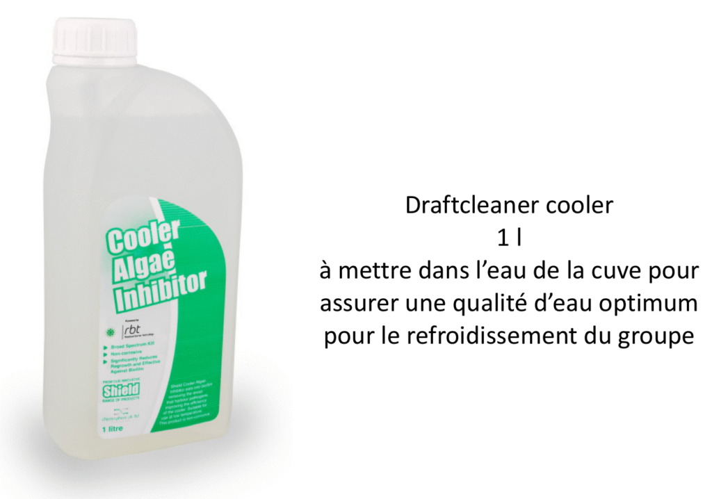 Les produits de traitement des circuits de refroidissement permettent de maintenir une qualité d’eau optimale dans les cuves des groupes de froid, contribuant à la performance et à la longévité des équipements.
