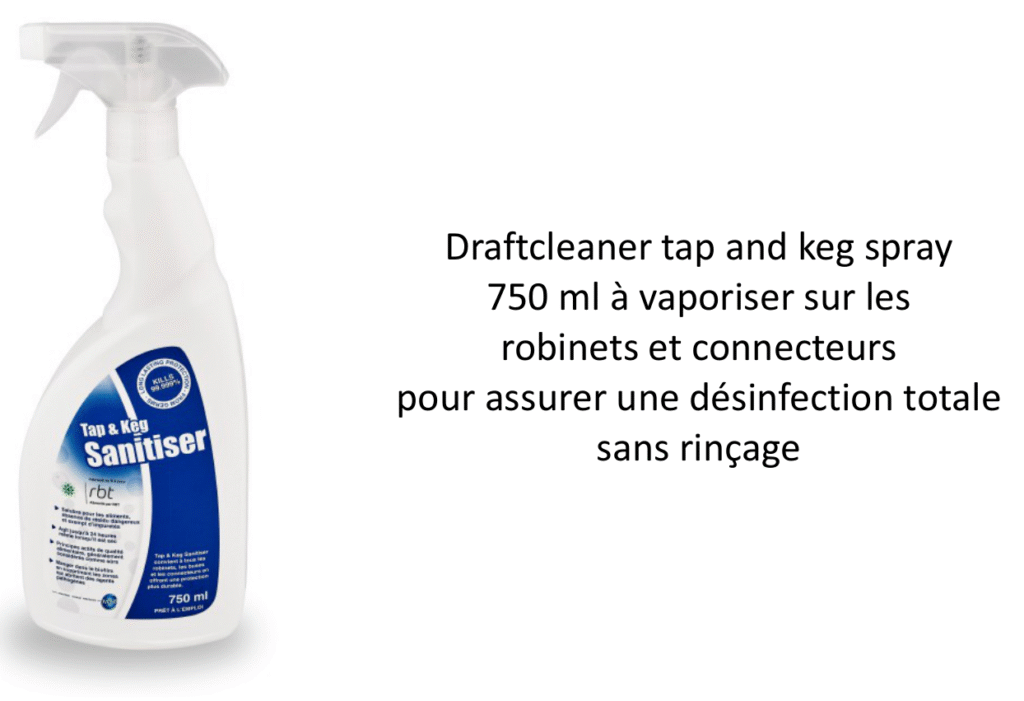 Les produits chimiques dédiés au tirage pression permettent d’assurer le nettoyage et la désinfection des lignes, robinets et équipements.
